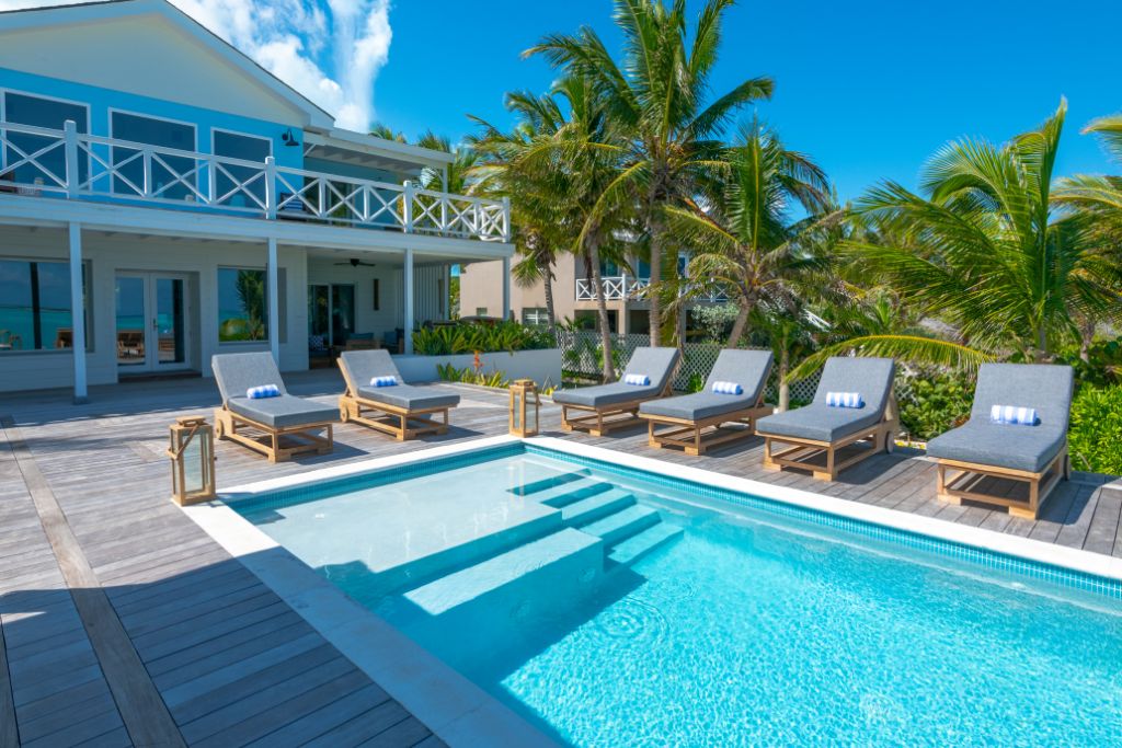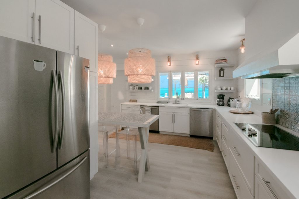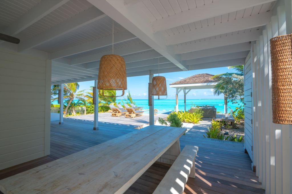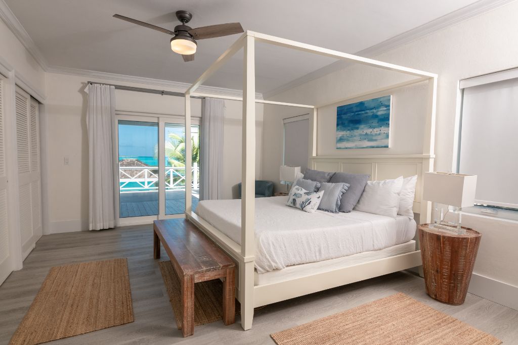 Enjoy your own piece of paradise with a vacation to the newly-renovated Bajamar, located on the stunning white sand beach of Tar Bay, Great Exuma, naturally landscaped with swaying palm trees and colorful bougainvillea. This spacious, 5-bedroom house sleeps 10 people in luxurious comfort. The master bedroom features a king-size bed and en-suite bath with shower, while 3 additional rooms offer king size beds, and the 5th room provides a choice of a king bed or of twin beds. You’ll find 5 full ensuite bathrooms, each with shower. All beds feature top-quality mattresses and fine linens—perfect for rejuvenating after a long day enjoying the sun and sand.