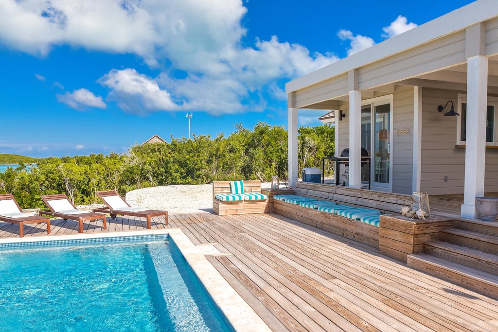The outdoor amenities include a beautiful naturally finished wooden deck, with matching patio furniture. The area is fitted with a private pool and a gas grill, ideal for the perfect BBQ or having a relaxing massage while overlooking the tranquil sights of Moriah Harbour!