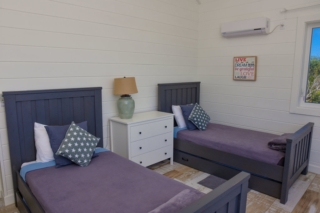 The 2nd bedroom located on the right side is the ultimate kids’ sleep area. It is fitted with two twin beds that can be joined together to make 1 king if requested.